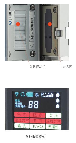 输液泵科力建元KL-8052N 输液泵性能优势: 1.动态实时阻塞压力指示(DPS); 2.时间、药量、滴数三种工作模式; 3.多档位阻塞灵敏度可调; 4.多种报警,按颜色区分报警优先级; 5.实时显示累计输液量,便于临床观察; 6.预置量完成后,自动转入KVO速度运行。 | ![]() |
