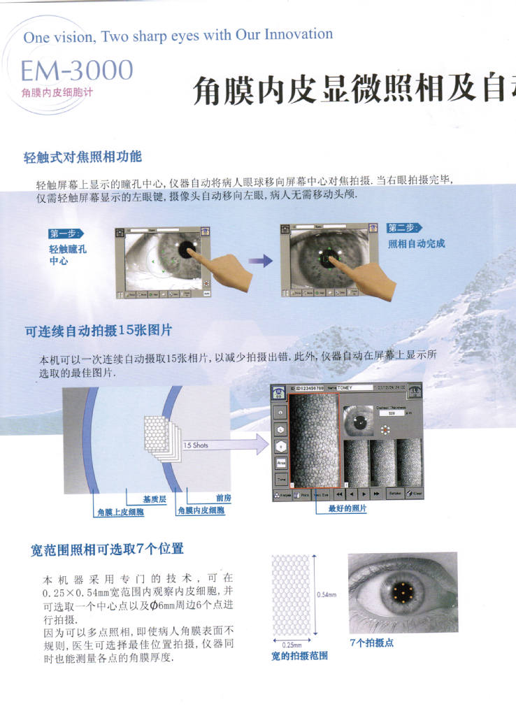 | 产品名称:TOMEY角膜内皮细胞计/角膜内皮细胞计数仪 产品分类:4.角膜内皮细胞计 产品品牌:日本TOMEY 产品型号:EM-3000 |