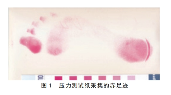 20 experimental subjects were randomly selected, each of whom walked normally on PressureFilms stress testing paper, extracted 4 naked footprints with the same foot and 4 leather footprints with the same foot. The footprints were magenta, and the images were entered into the computer with a scanner. The resolution was 300 pixels, and the scale and color card were placed when scanning.