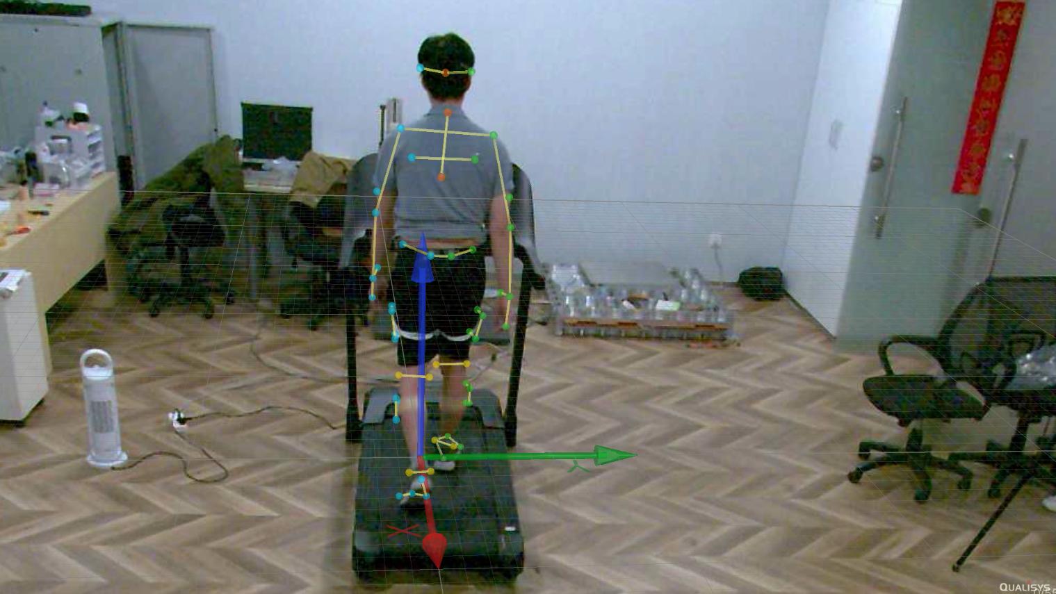 我们采用Qualisys动作捕捉系统同步采集受试者在跑步机配速为5km/h、7km/h、9km/h、11km/h跑步时膝关节、踝关节、髋关节的运动学参数,利用Visual3D计算关节角度等数据,**用SPSS软件对数据结果进行单因素方差分析,探析不同跑速下对受试者下肢各关节运动学特征的影响,为个性化的跑步机训练和康复计划提供科学依据。