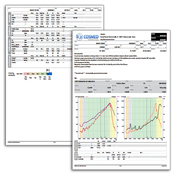 ■ Powerful post-test editing phase for data filtering, calculation of thresholds (AT, RCP), VO2max, EFVL, VE/VCO2 slope, intercept and other parameters requested for interpretation.