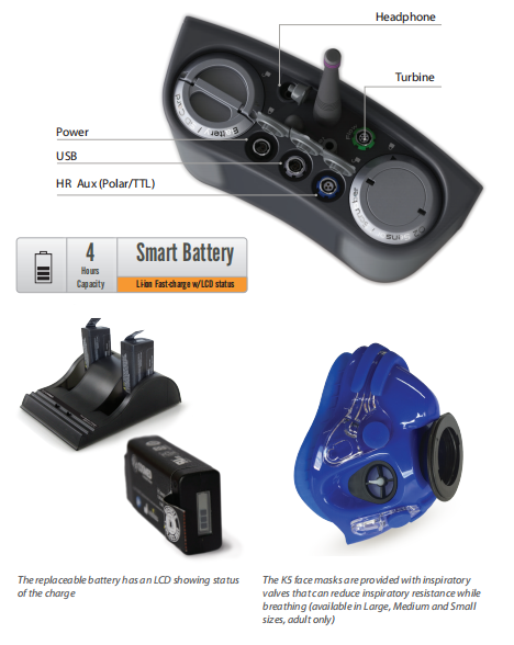 ■ K5 comes standard with USB port for real-time communication with PC or for data download. Connecting K5 to a USB port turns the device into a conventional metabolic cart (PC controlled via software only).