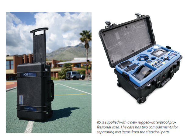 ■ Designed according to IP54 standard, K5 is a tough/rugged device. Rubber seals protect the body, connectors and ports against water, moisture and dust intrusion.