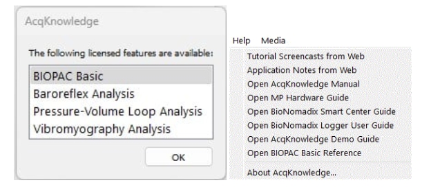 Sample data files and pre-configured graph templates can be accessed via the AcqKnowledge Demo Startup Wizard.