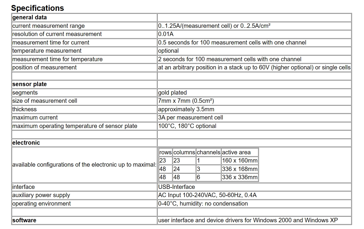 With the current scan lin, the current density distribution can be measured with a high resolution and it offers a linear complexity. So it is also applicable in large fuel cells. It is connected via USB to any computer and easy to use.