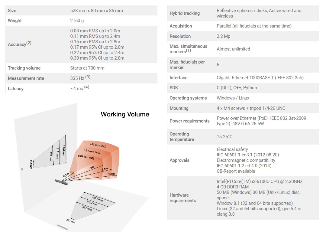 The fusionTrack can be customized to fit your requirements (e.g. precision level, acquisition speed, working volume). Moreover, the system is compatible with existing passive image-guided surgical tools that are widely used in the medical field.