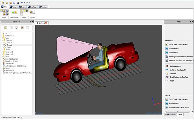 HumanCAD人体运动仿真软件可以协助设计各种运输工具。 您可以轻松创建各种人体测量学的人体模型,以测试您的设计的覆盖范围,视野等。